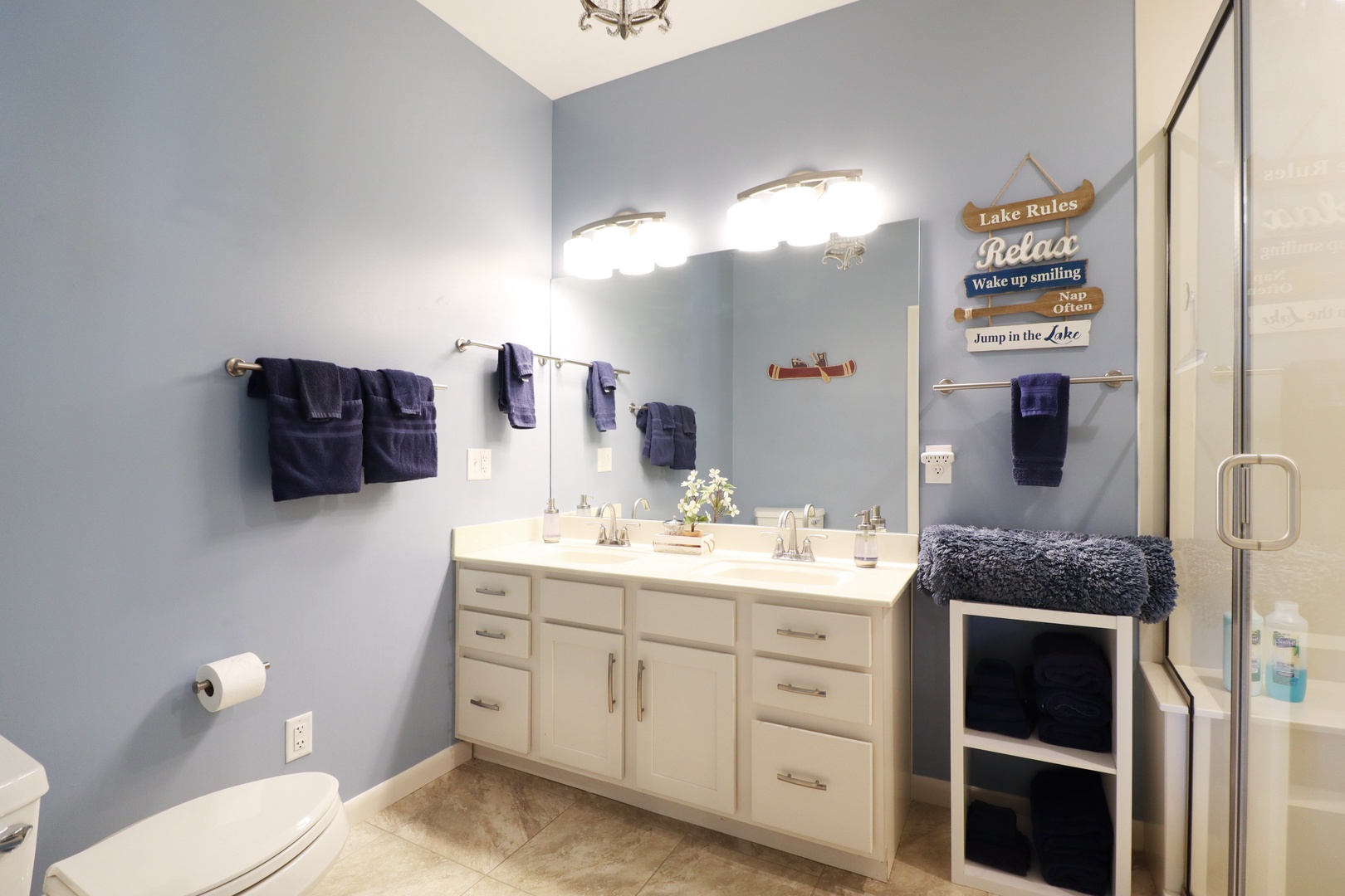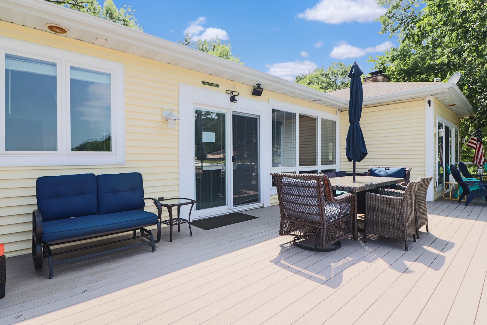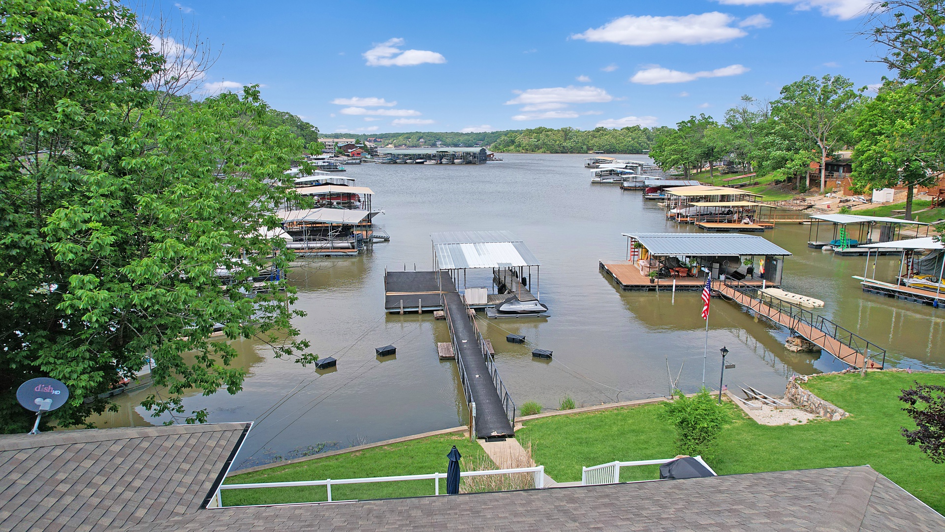 Outside, you'll find a spacious deck with plenty of seating, perfect for enjoying your morning coffee or watching the sunset over the lake. The deck also features a gas grill, making it perfect for summer barbecues. Take a dip in the waters of the lake, or bring your boat to dock at our private dock.