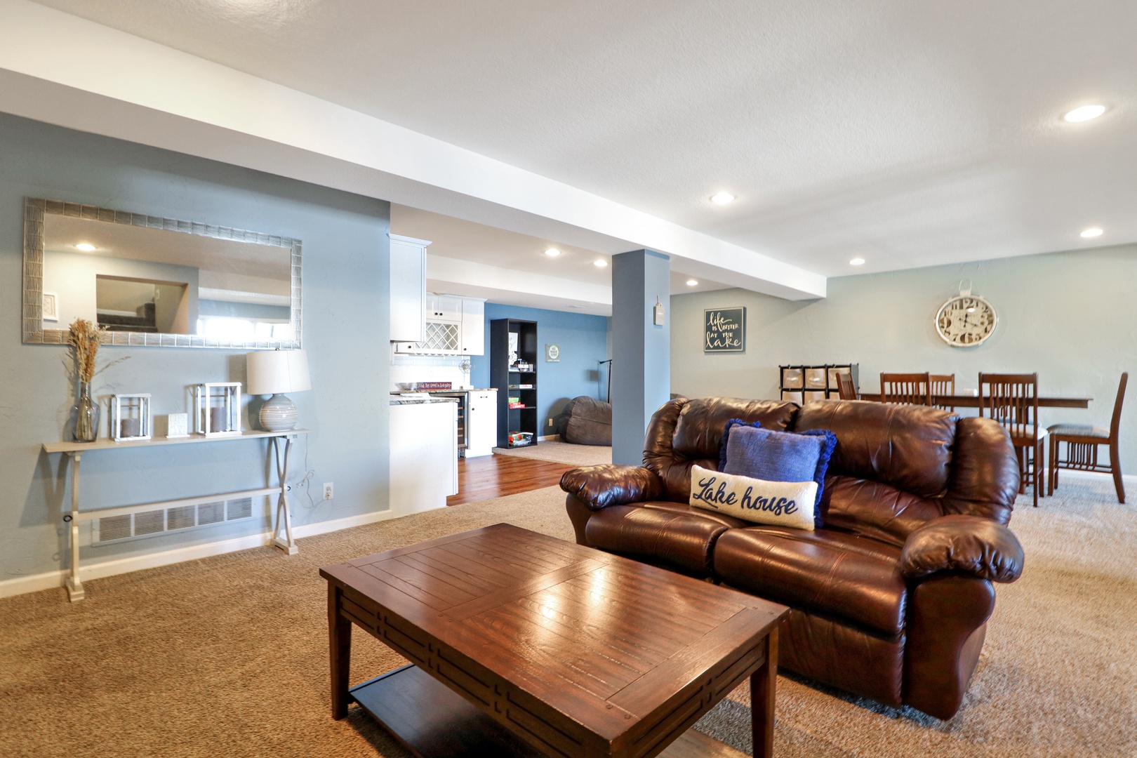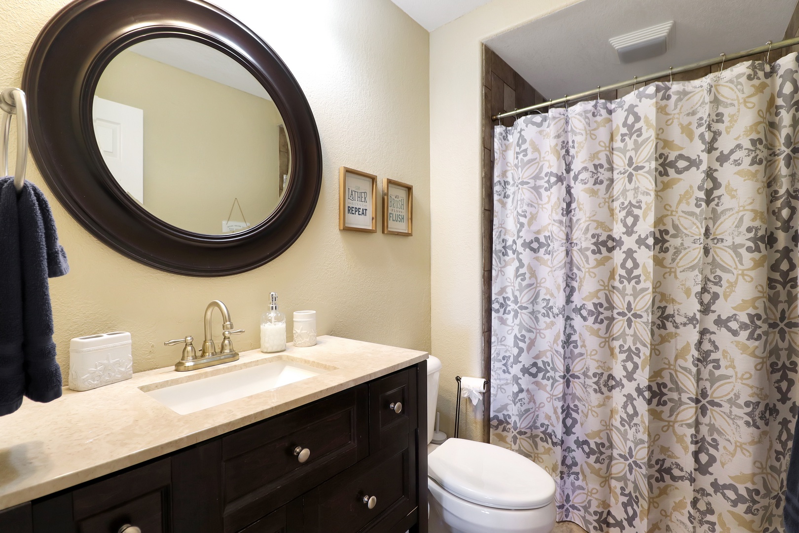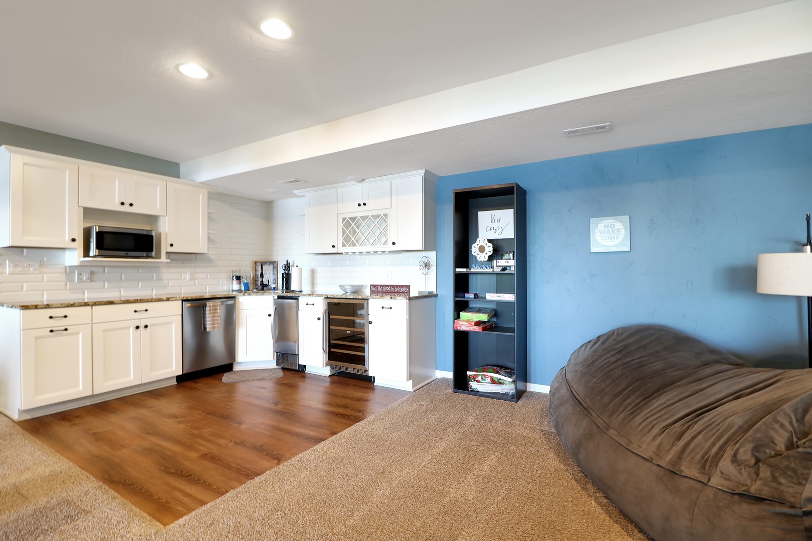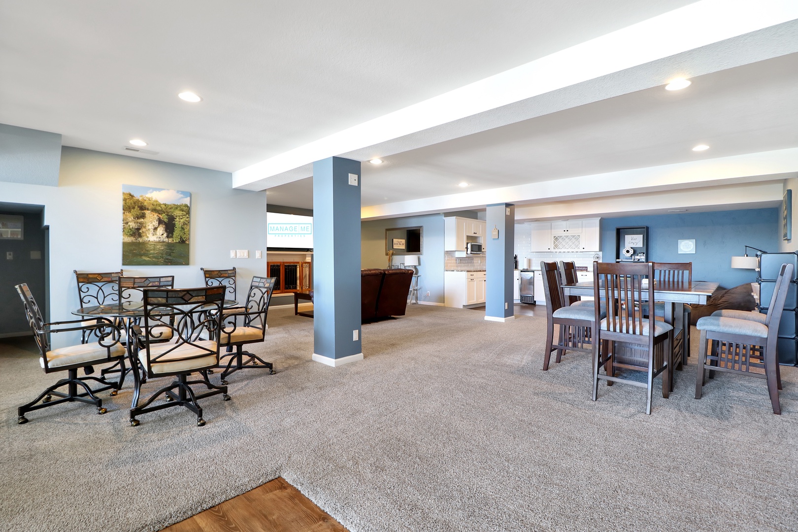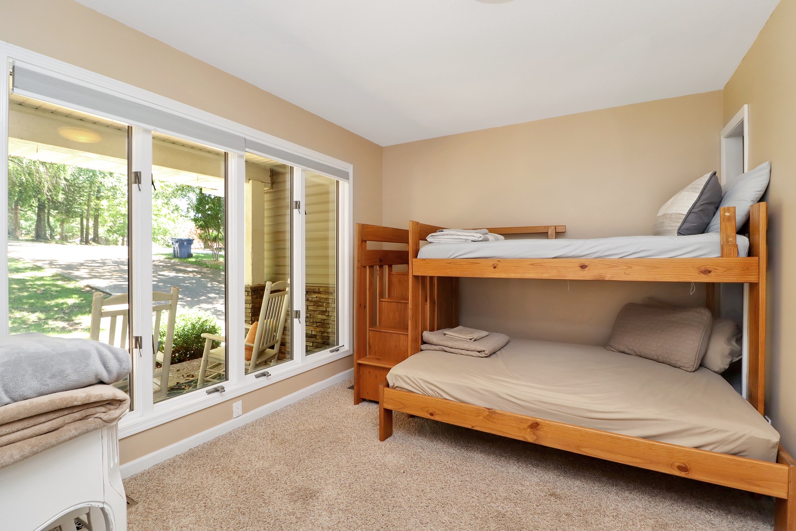 On the lower level, you'll find a 2nd kitchen and a huge living area perfect for gathering family and friends. Gather in the lower level to watch TV or hang out reading books. Snuggle into the oversized beanbag chair or play cards at either of the tables. Let the little ones have fun exploring this home- you may find them tucked behind the stairs in the kid's game corner.