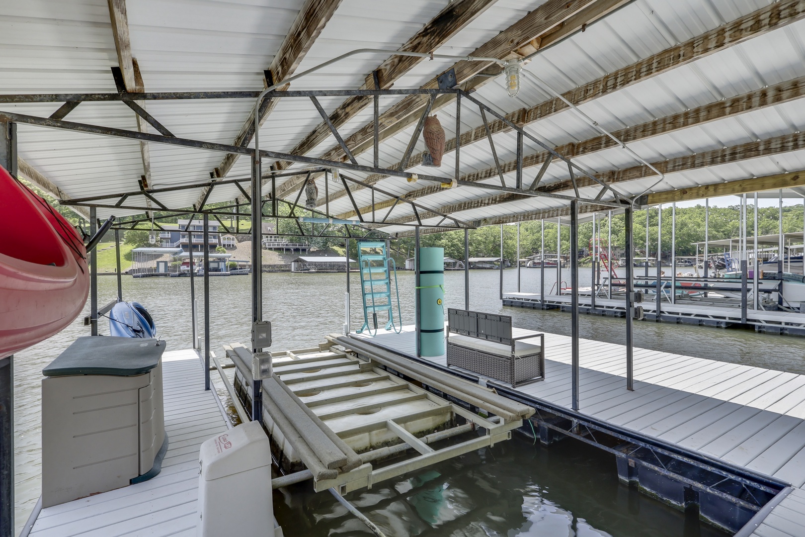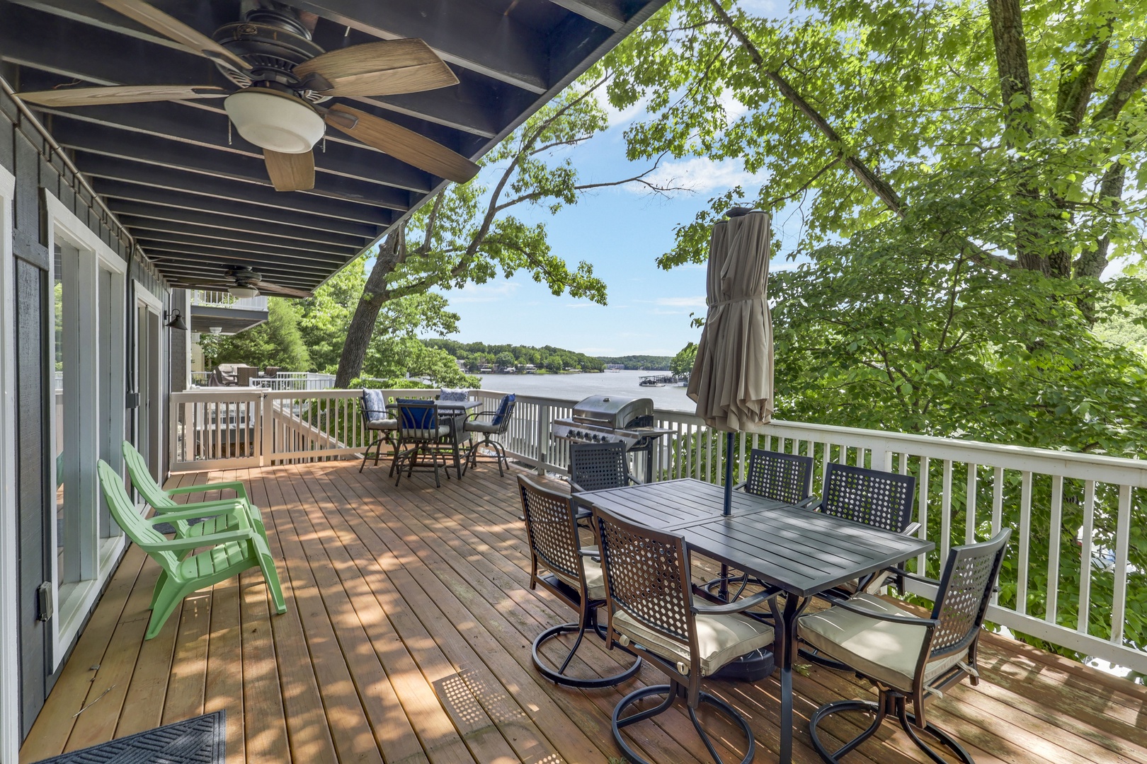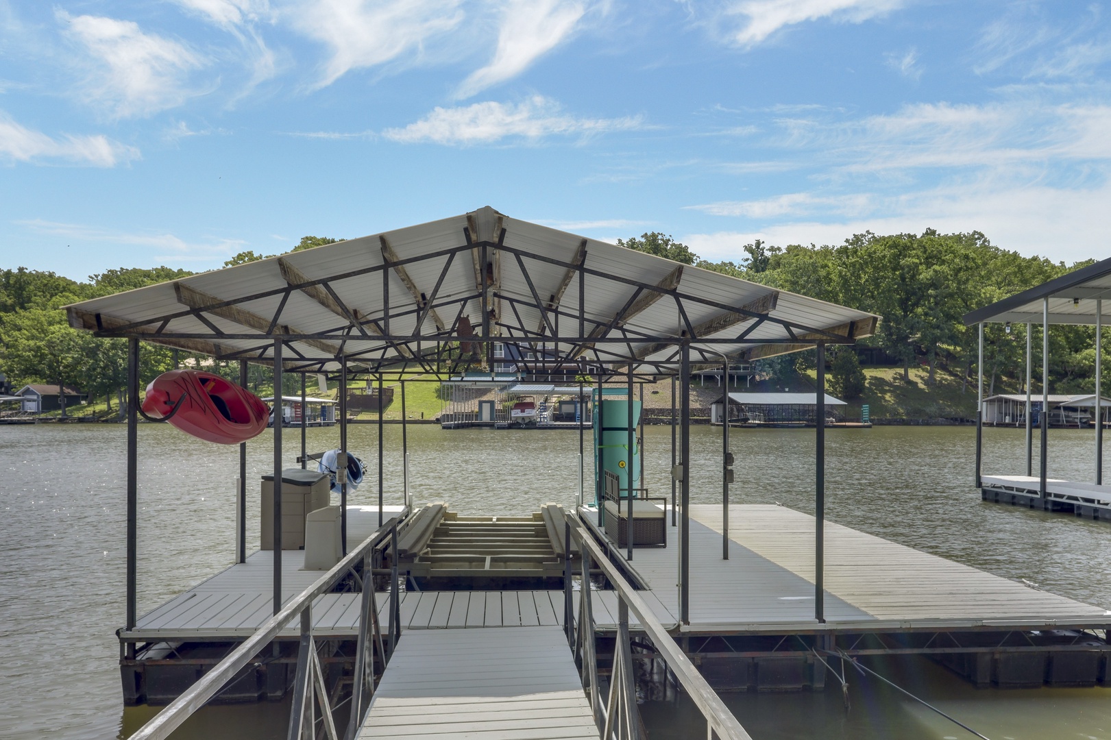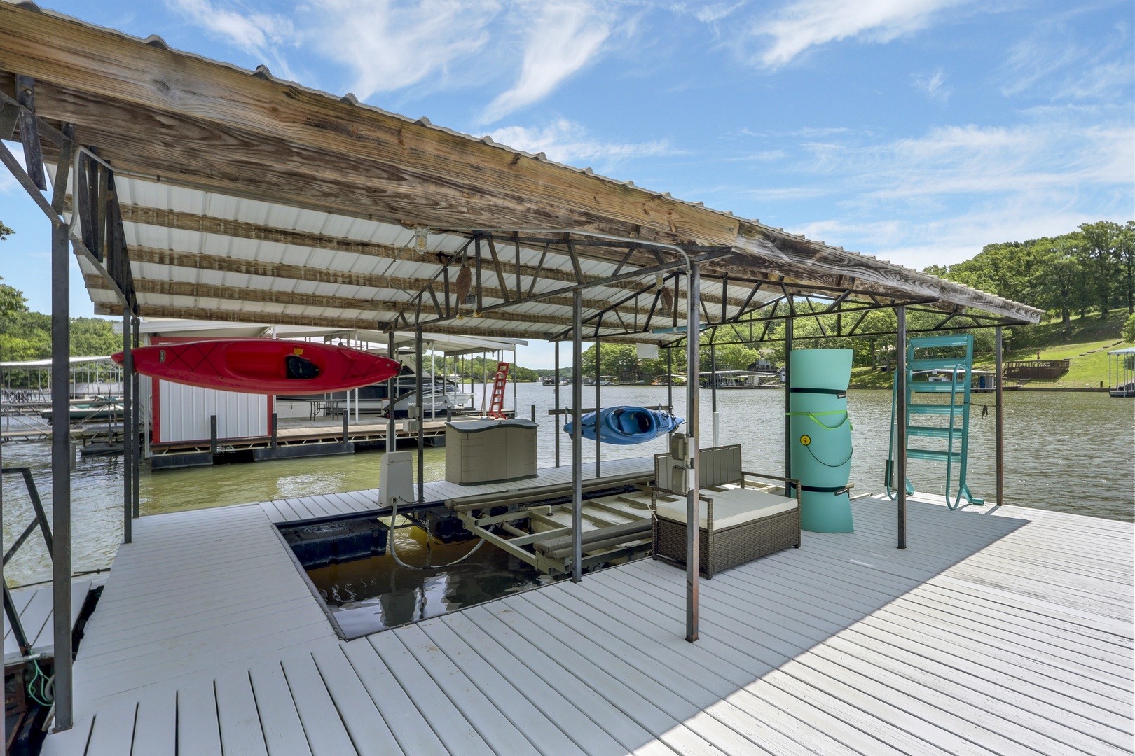 Enjoy breathtaking lake views from the spacious deck, ideal for morning coffee or evening relaxation. The property includes a private boat slip, two kayaks, and a lily pad, providing endless fun on the water.
