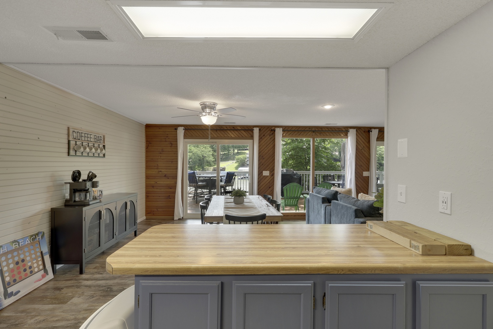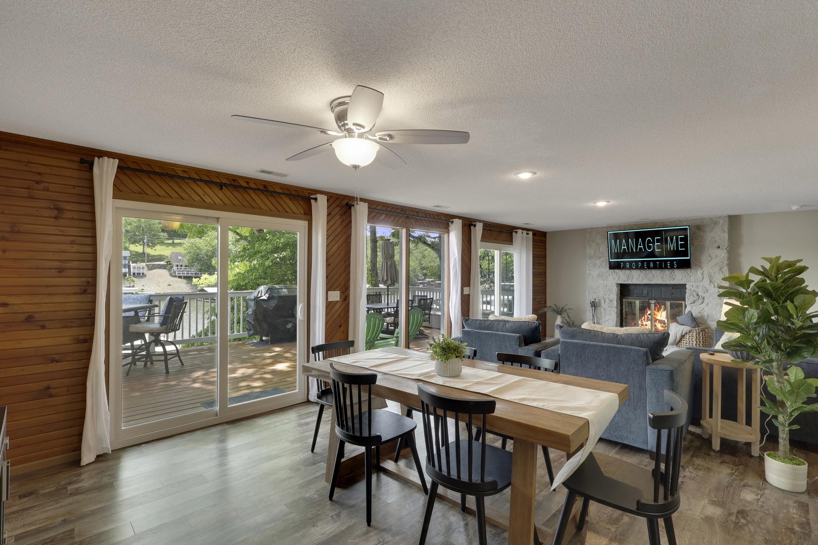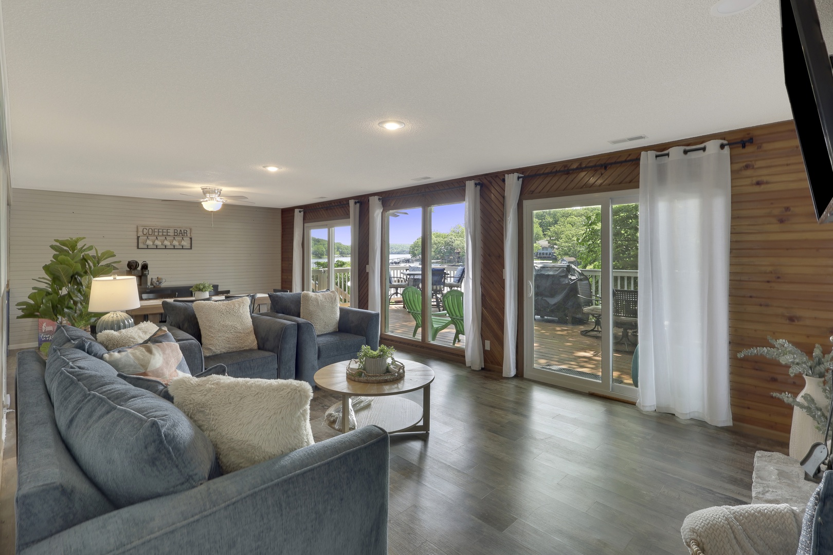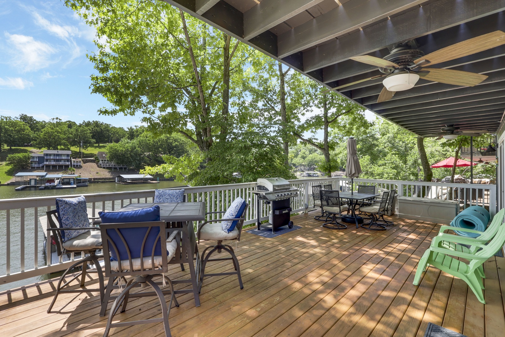 Enjoy breathtaking lake views from the spacious deck, ideal for morning coffee or evening relaxation. The property includes a private boat slip, two kayaks, and a lily pad, providing endless fun on the water.