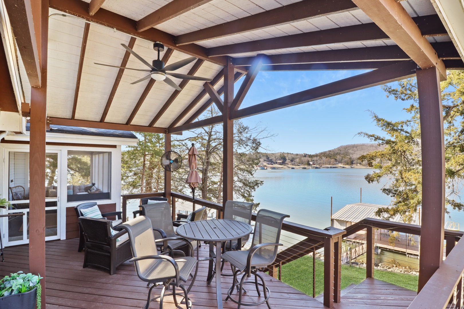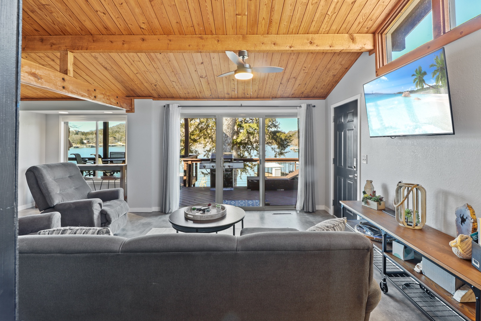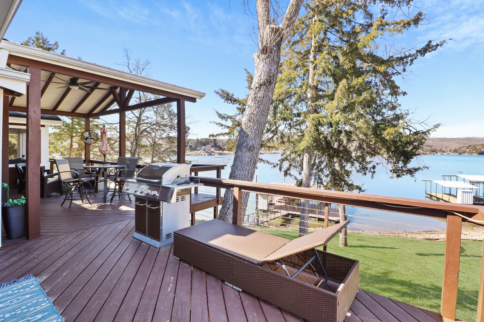 This charming 3-bedroom, 2-bathroom home offers everything you need for a peaceful and fun-filled stay at the lake.