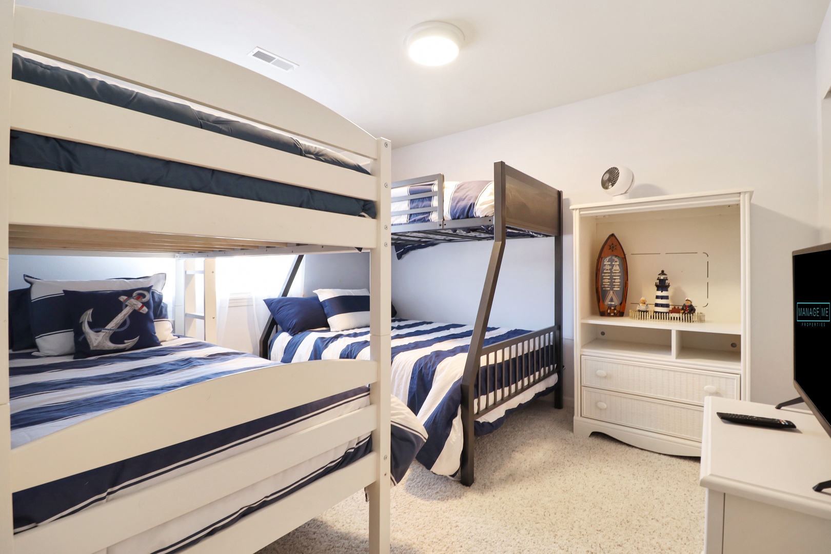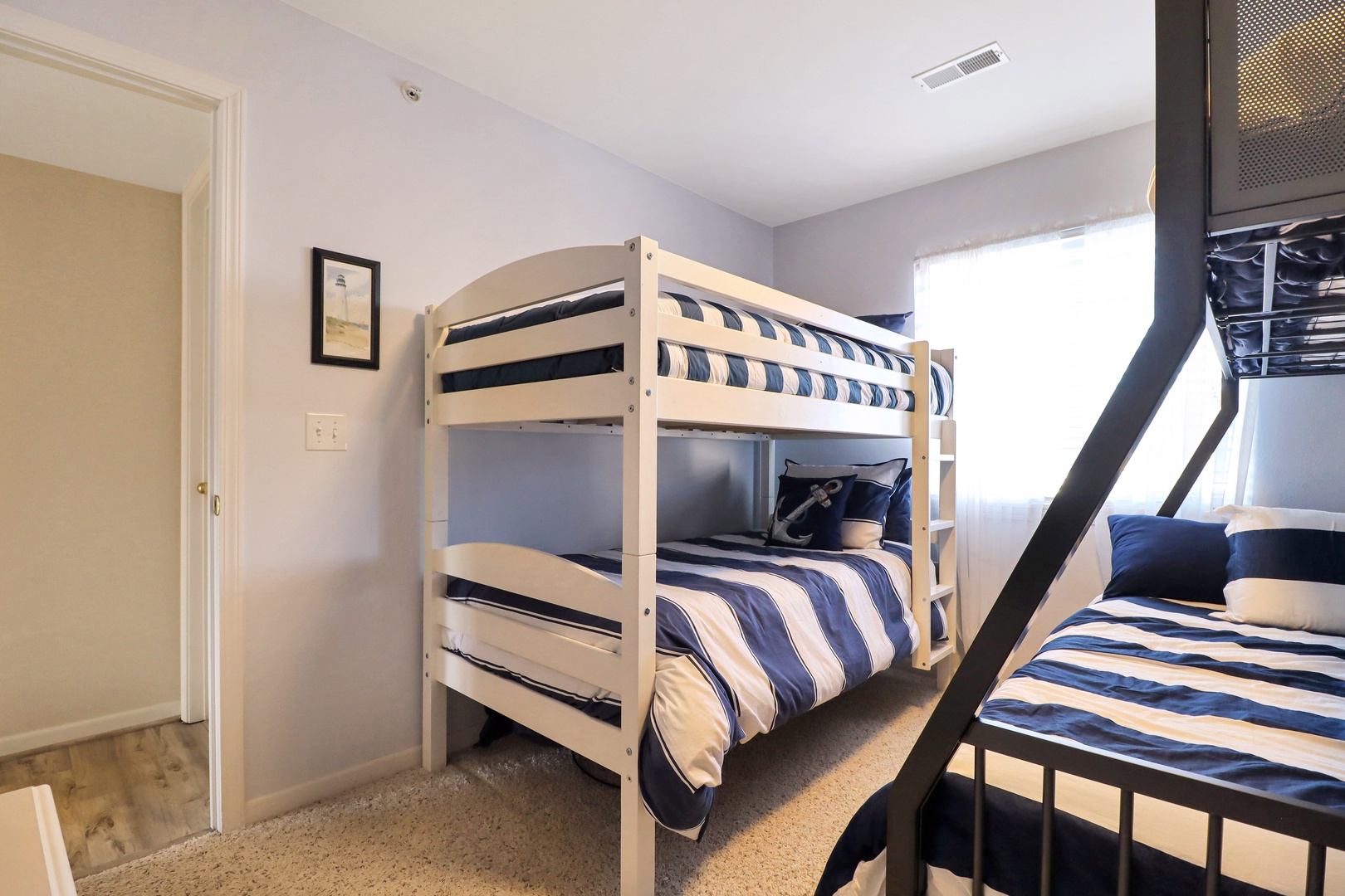 The third room is a fun haven for kids or extra guests, equipped with two twin-over-full bunk beds, accommodating everyone in style.