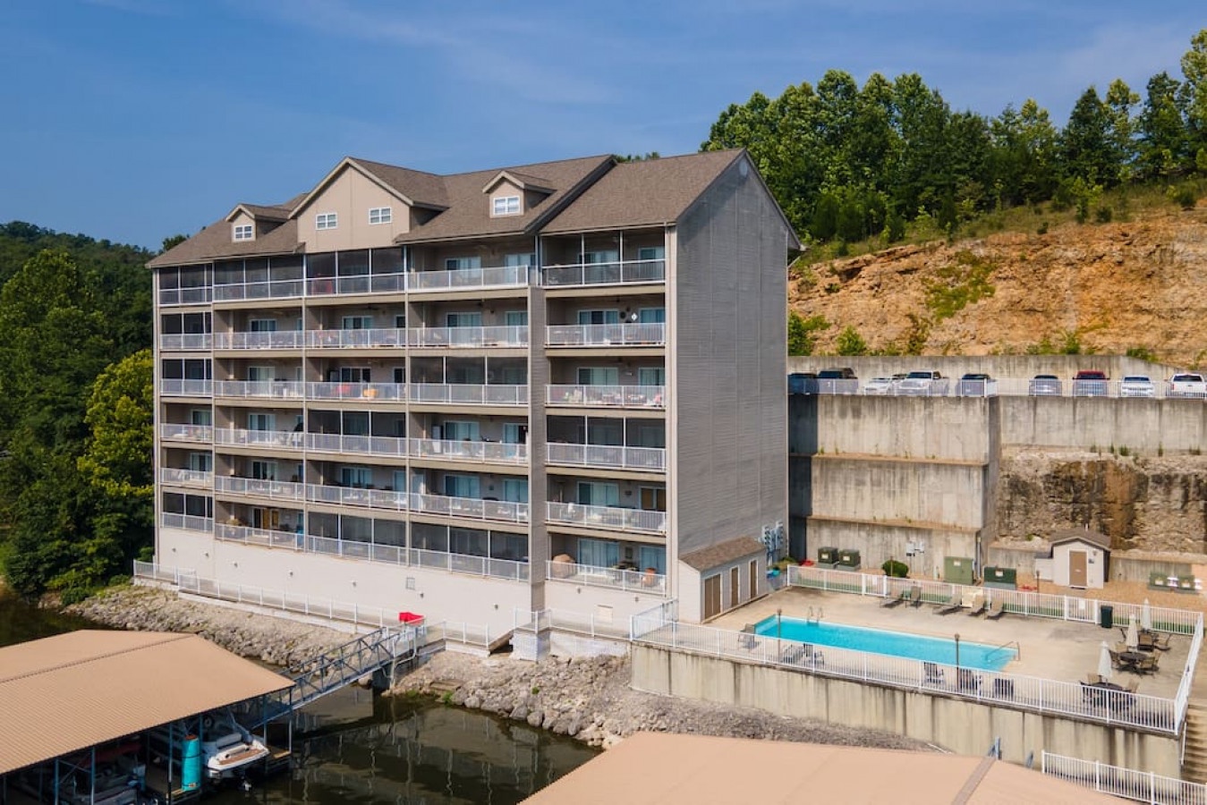 If you are bringing a boat trailer, parking is located up above the complex right before driving down the hill.