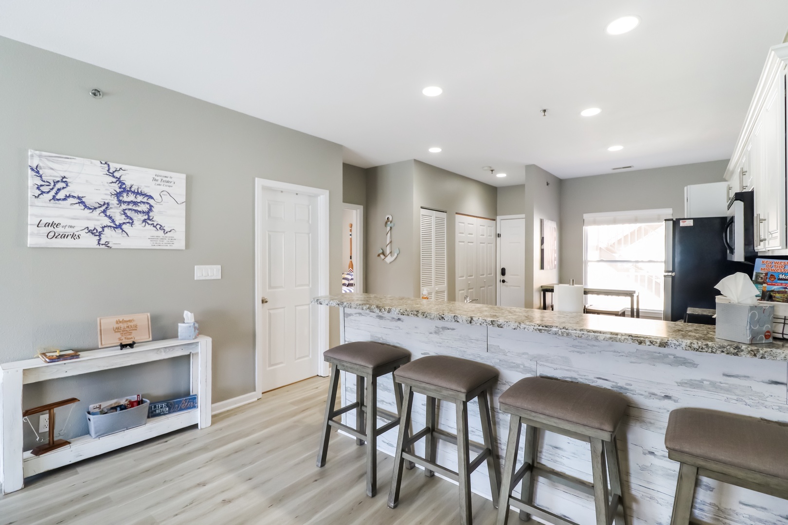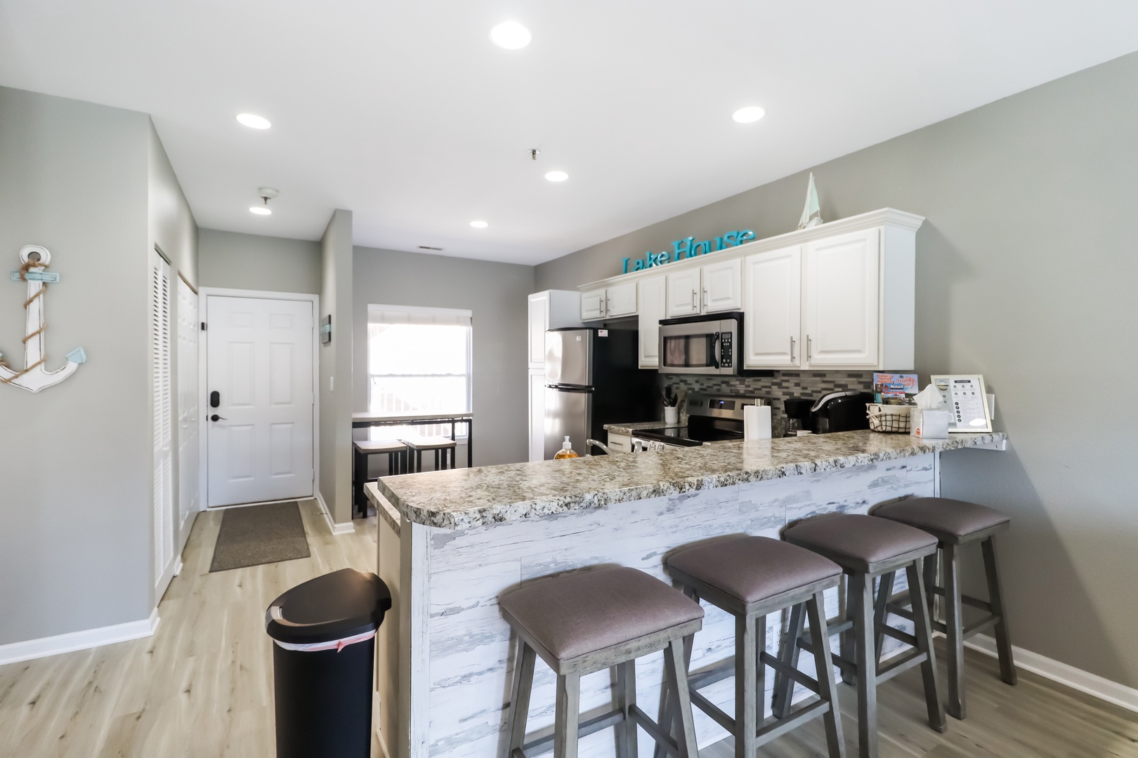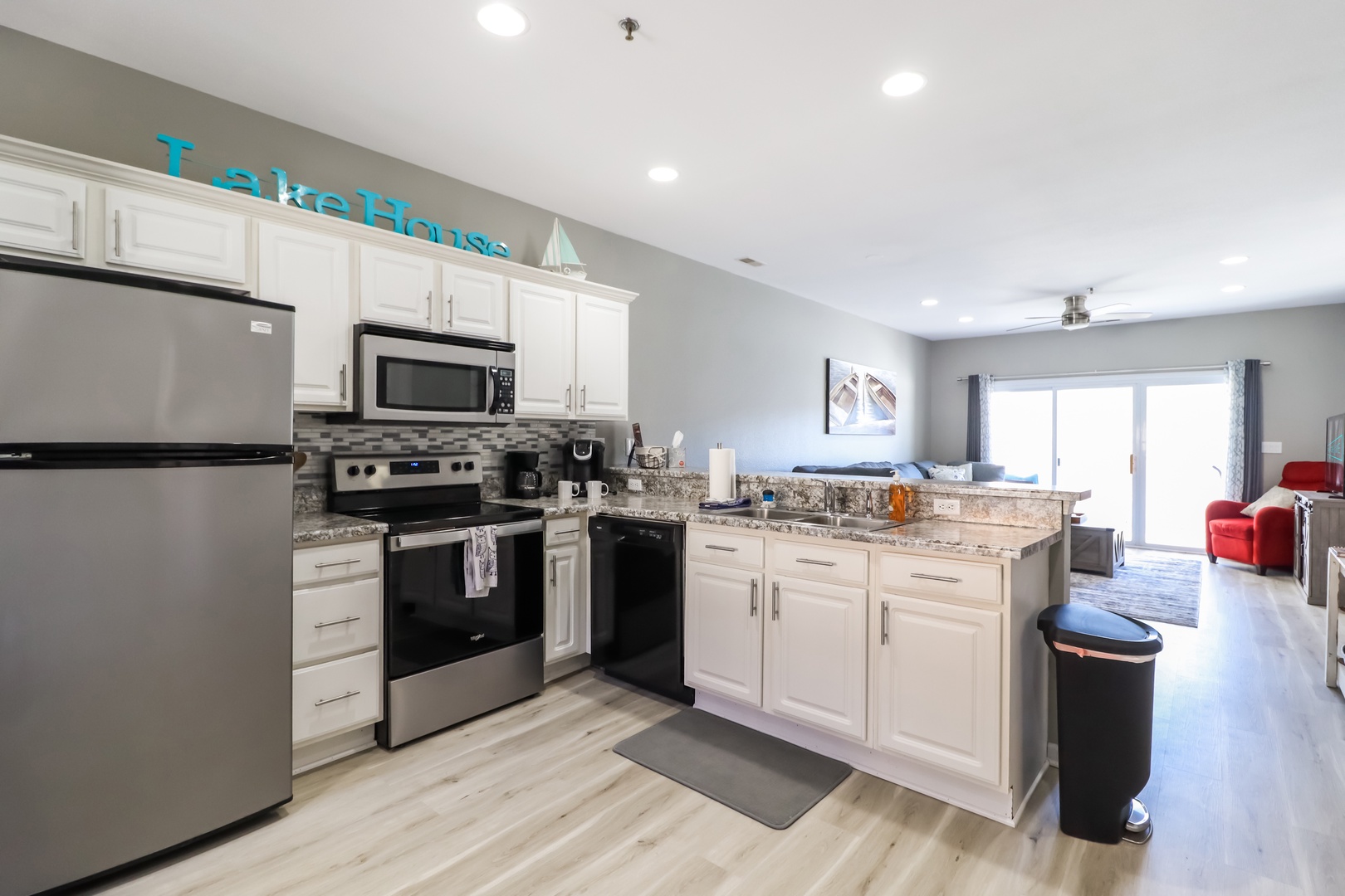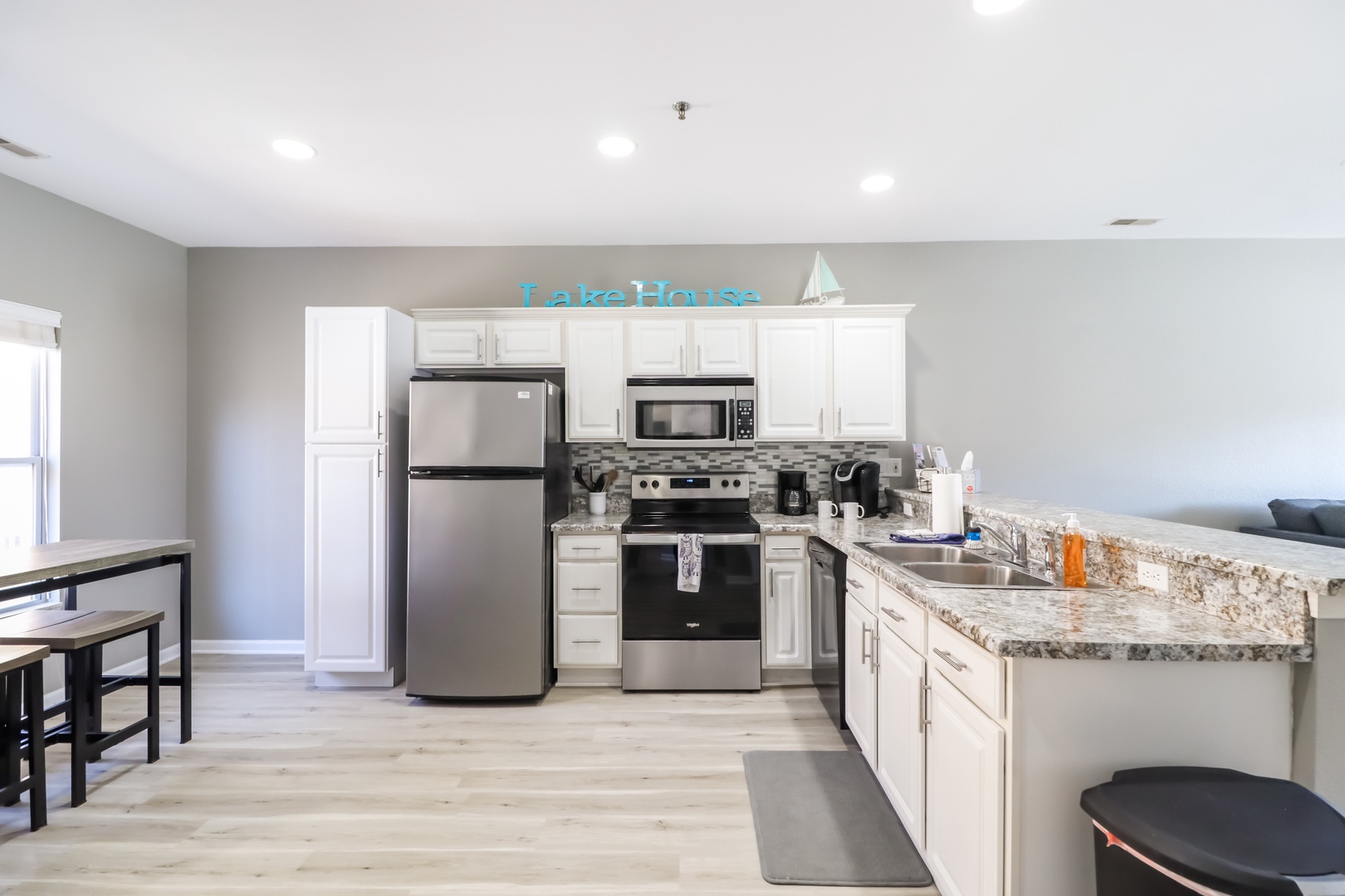 Kitchen- Fully stocked kitchen with stainless steel appliances. The condo has everything you will need for the BEST lake experience.