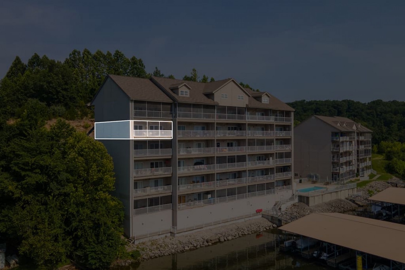 Walk in level from parking lot but middle of the building lakeside