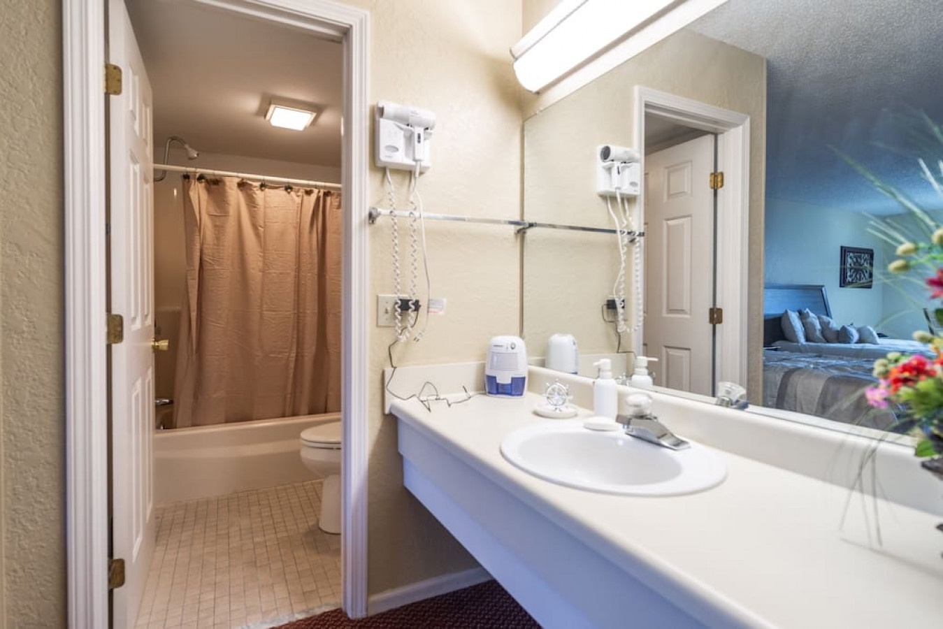 Bedroom 1- 2 Queen beds with private full bathroom. (Tub/shower combo)