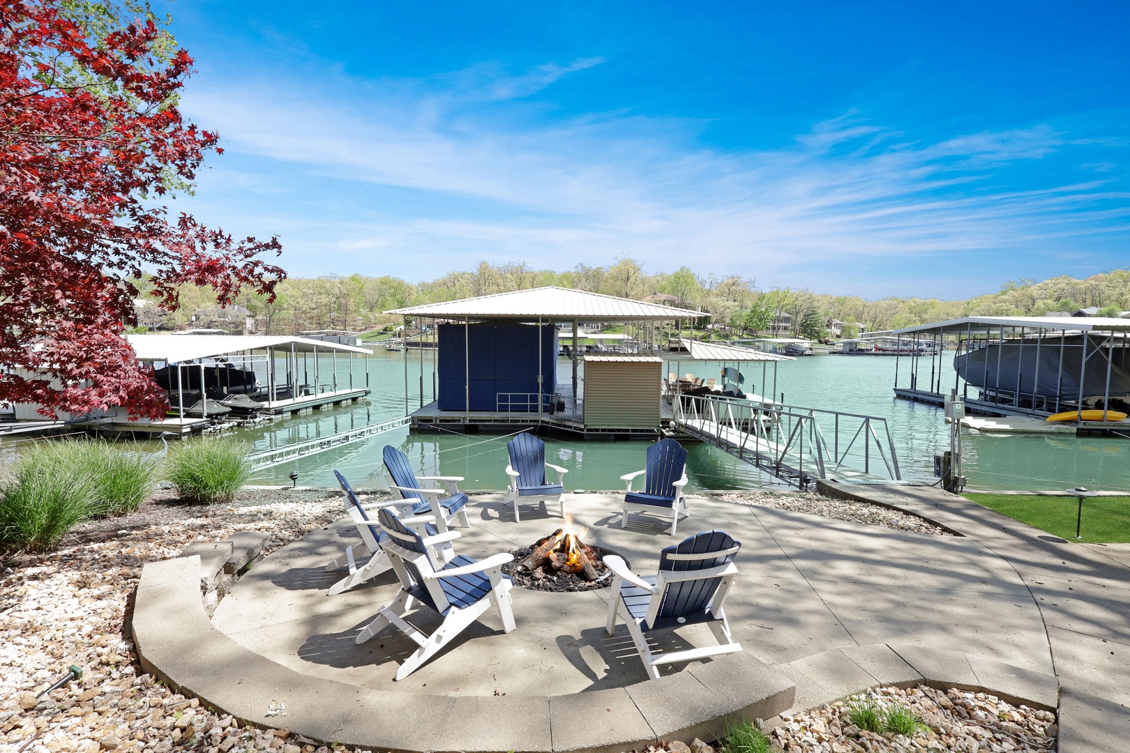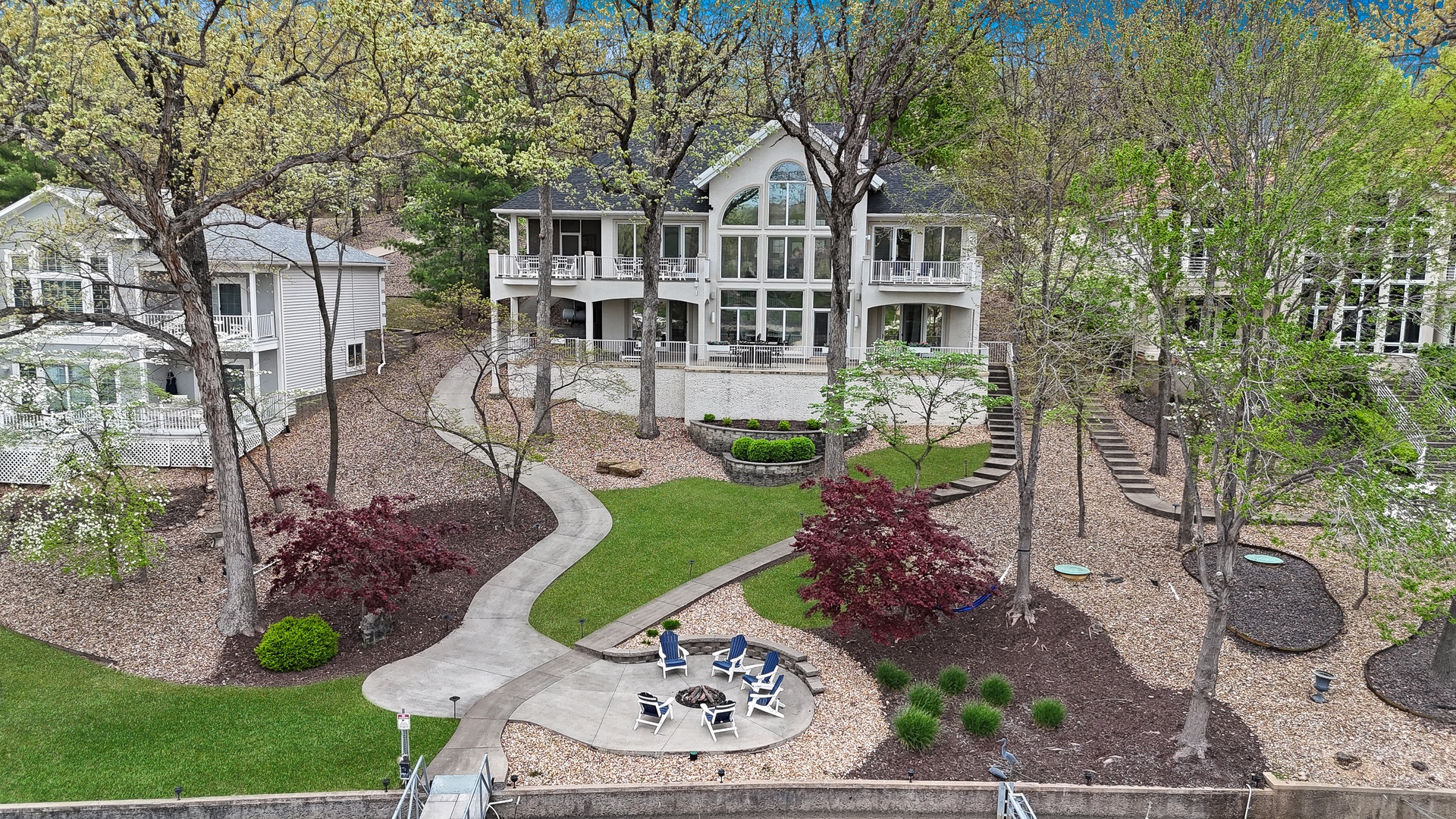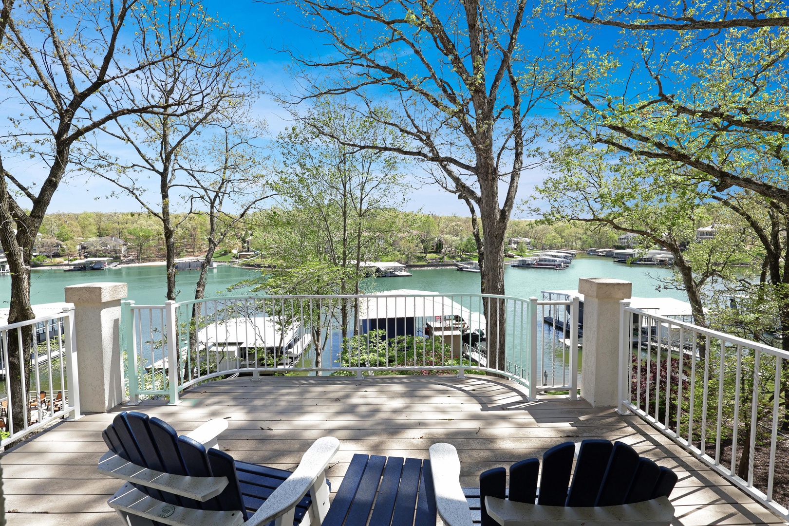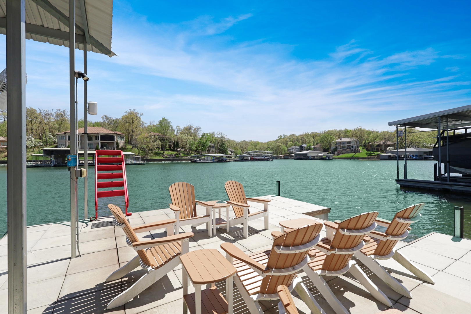 With 90 feet of deep-water lakefront, the private concrete dock includes a boat slip, entertainment space, wet steps, and a diving platform—perfect for all your lake adventures.