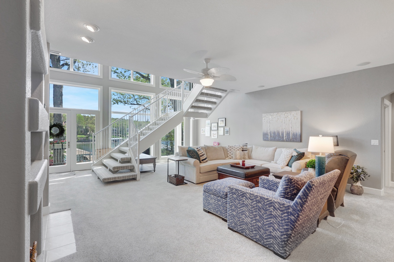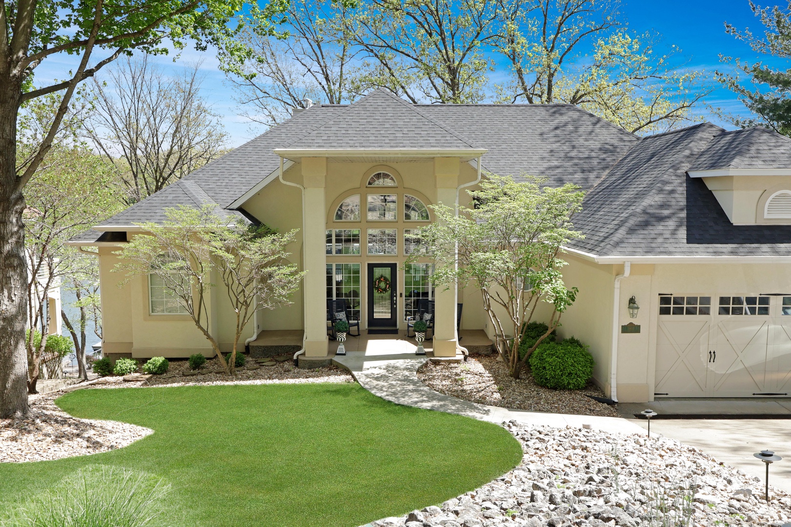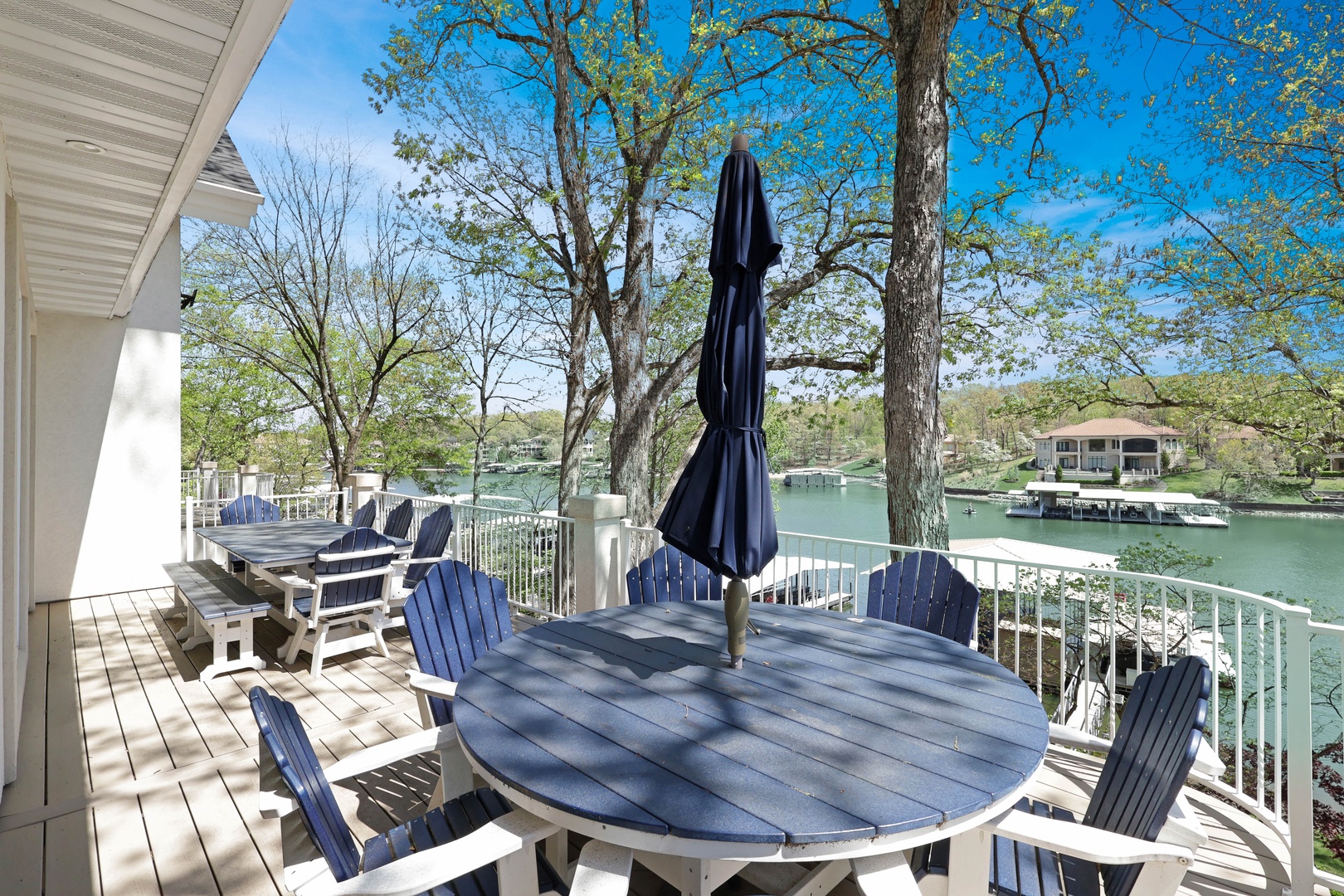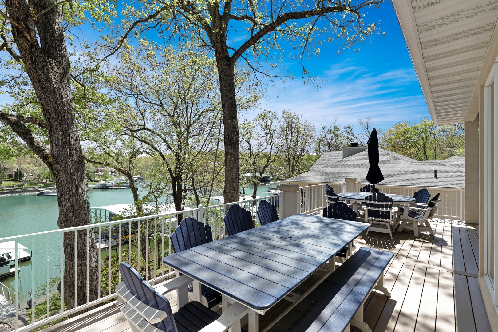 With 90 feet of deep-water lakefront, the private concrete dock includes a boat slip, entertainment space, wet steps, and a diving platform—perfect for all your lake adventures.
