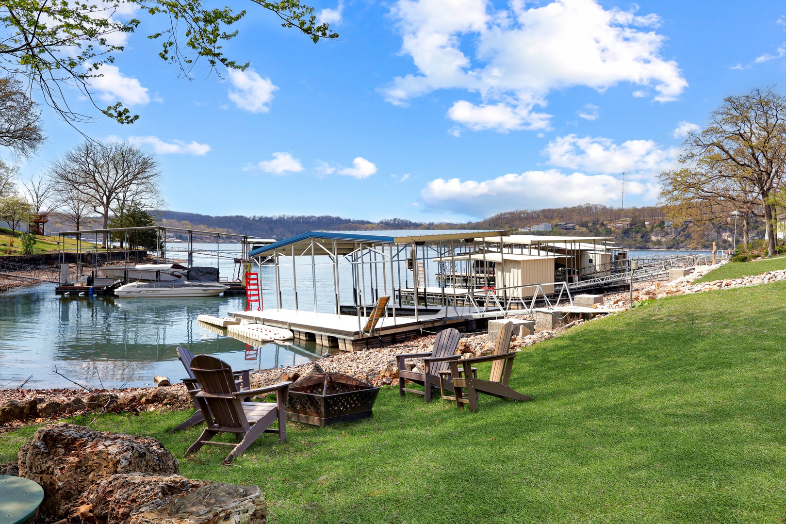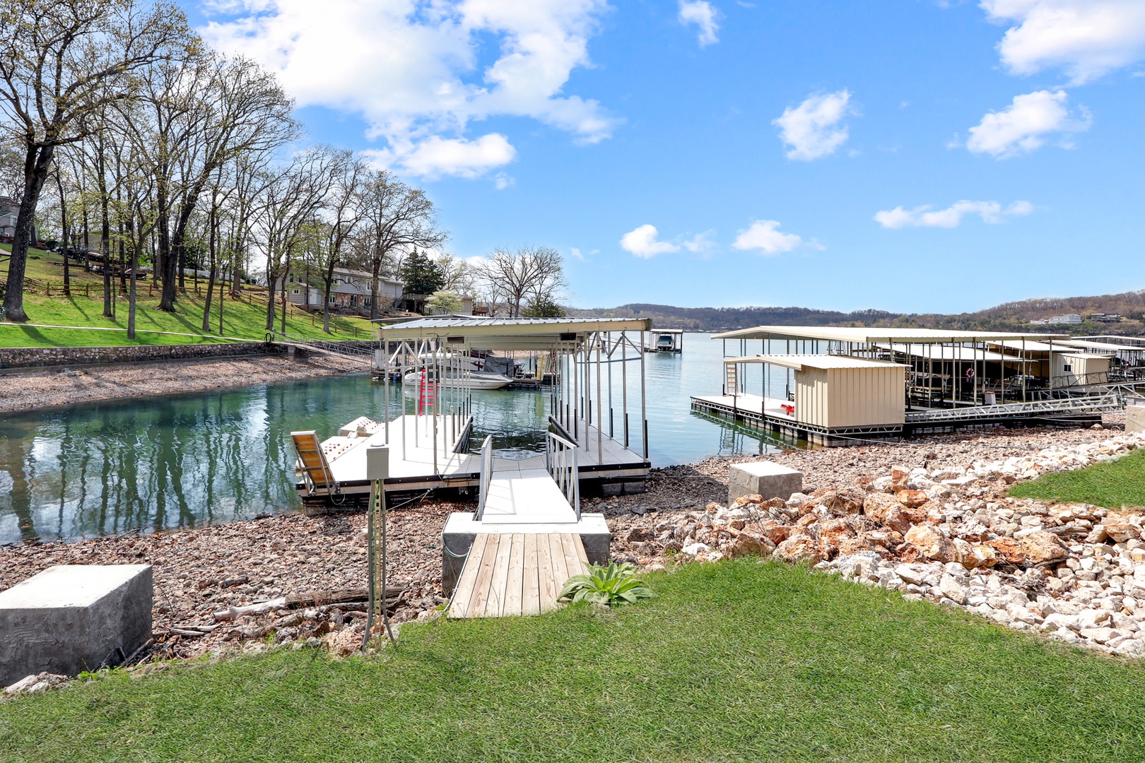 Private boat dock with covered slip provides easy lake access for water adventures and peaceful moments on the water.