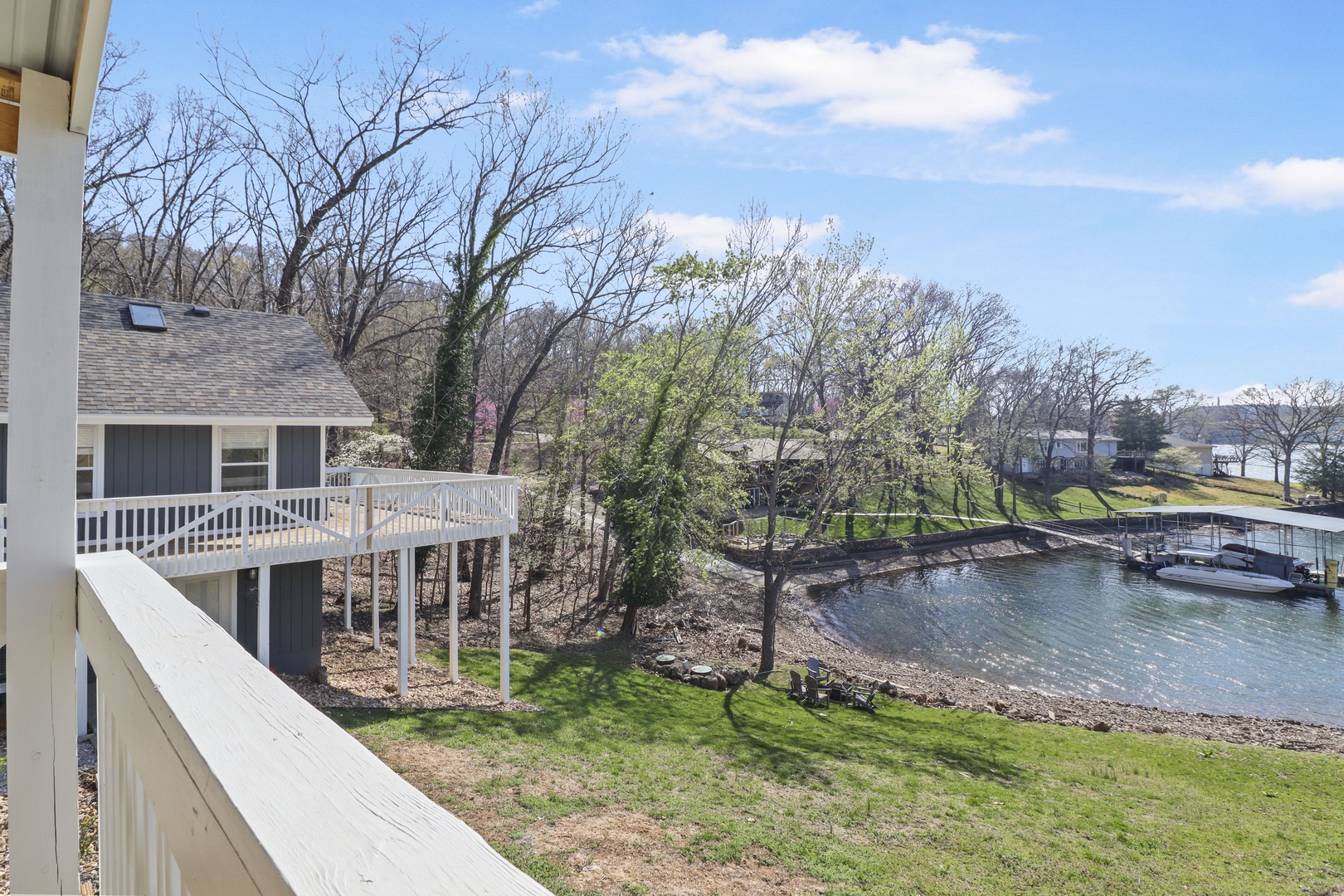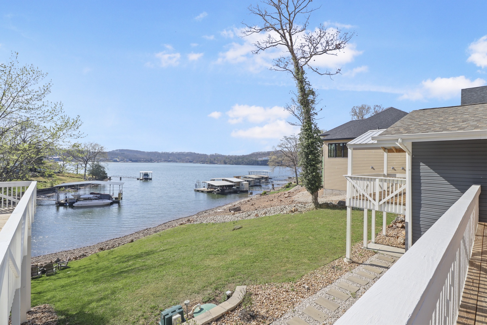 Located in a small cove with breathtaking views of the main channel, the property offers peaceful surroundings, perfect for unwinding after a day of lake activities. The cove is ideal for families, with swimmable waters – bring your water shoes! While we don’t have a dock yet, the water is easily accessible right from the yard, so you can enjoy fun-filled lake days and quiet evenings by the shore.