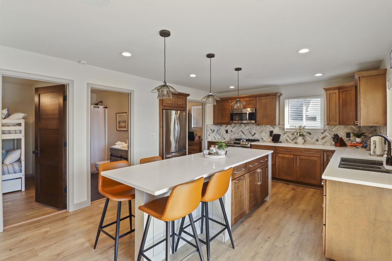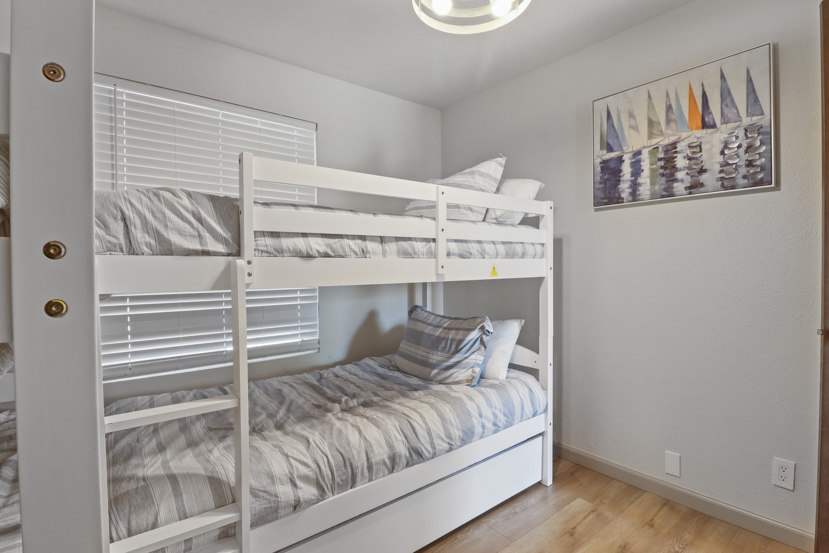 Bedroom 3 is the ultimate bunk room with 2 sets of twin-over-twin bunks and a twin trundle under one of them.