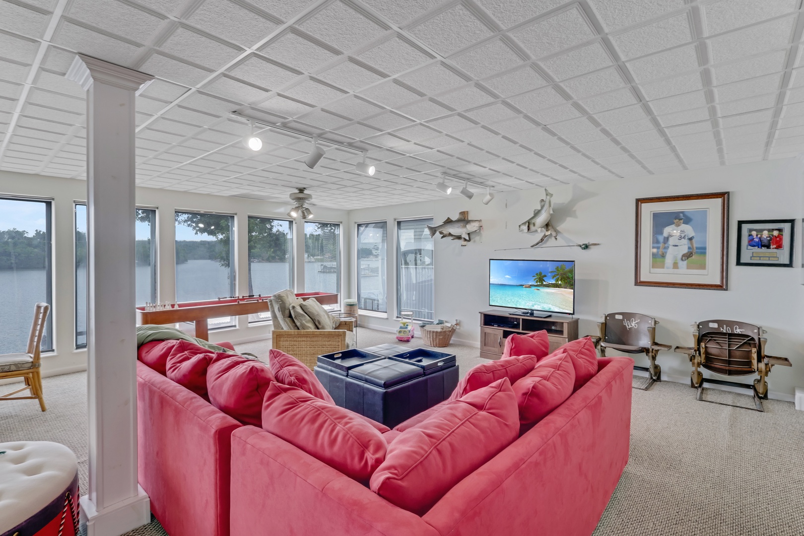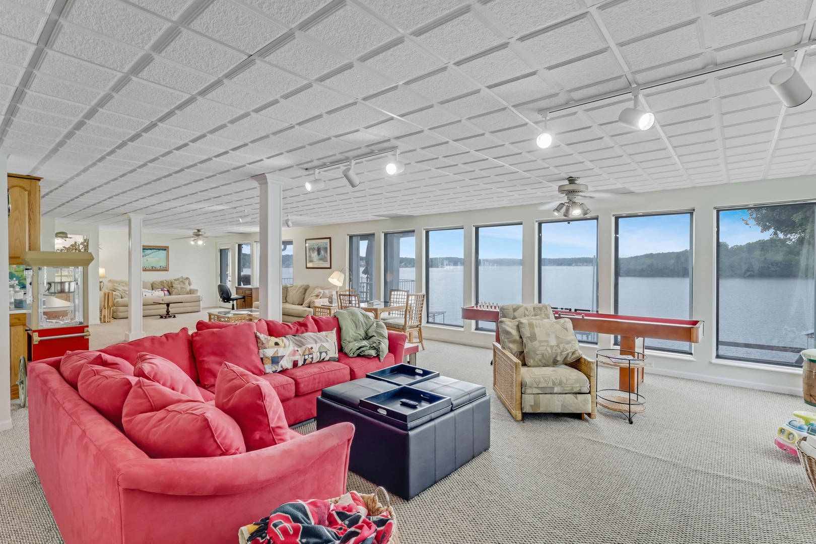 Inside, you'll find all the cozy comforts of home plus a bonus: shuffleboard, darts, corn hole, giant Jenga, and a collection of classic board games for rainy-day fun or competitive evenings in. The spacious layout gives everyone room to relax after a day at the lake.