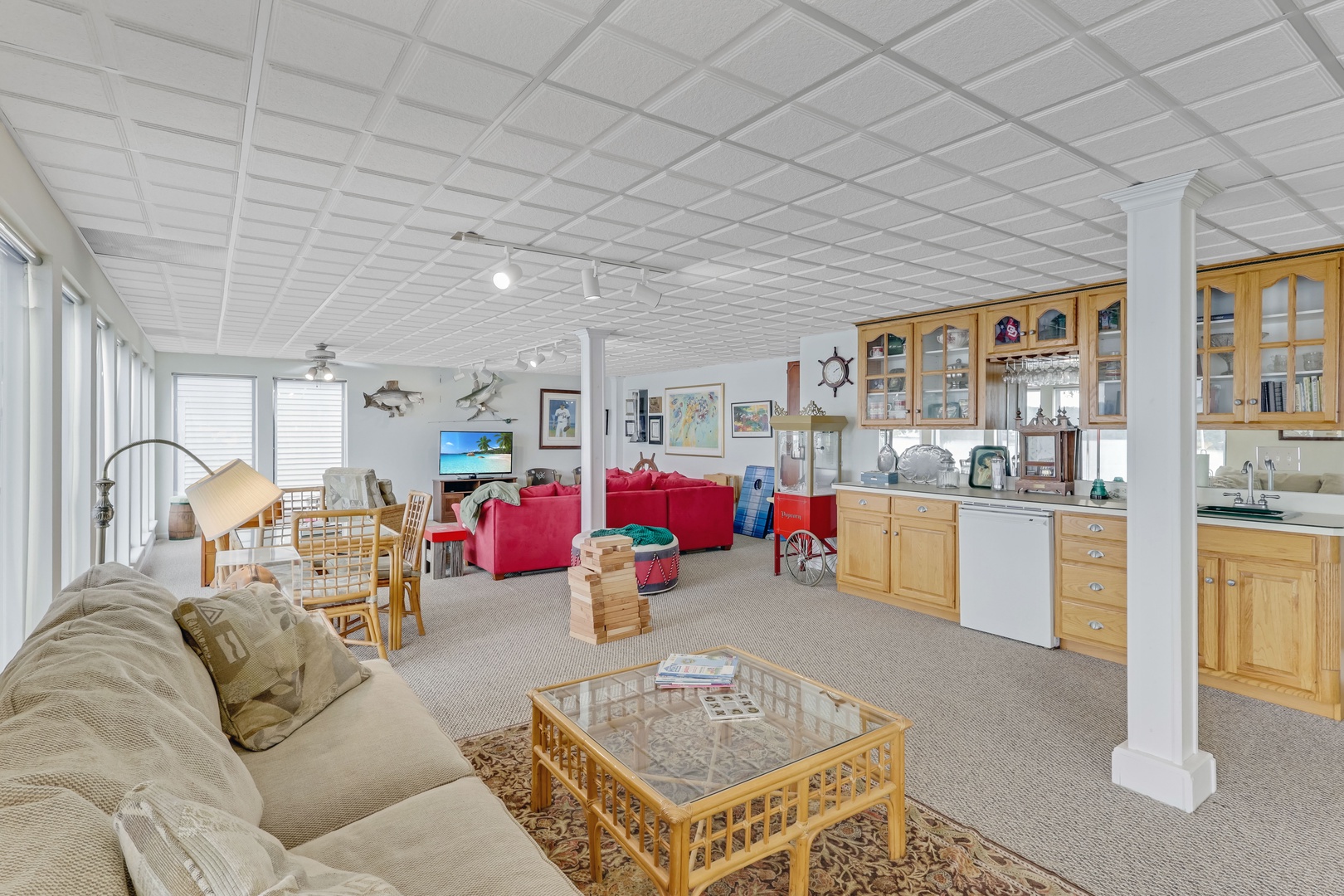A sleeper sofa near the patio entrance downstairs - Sleeps 2