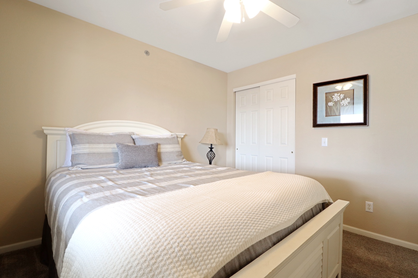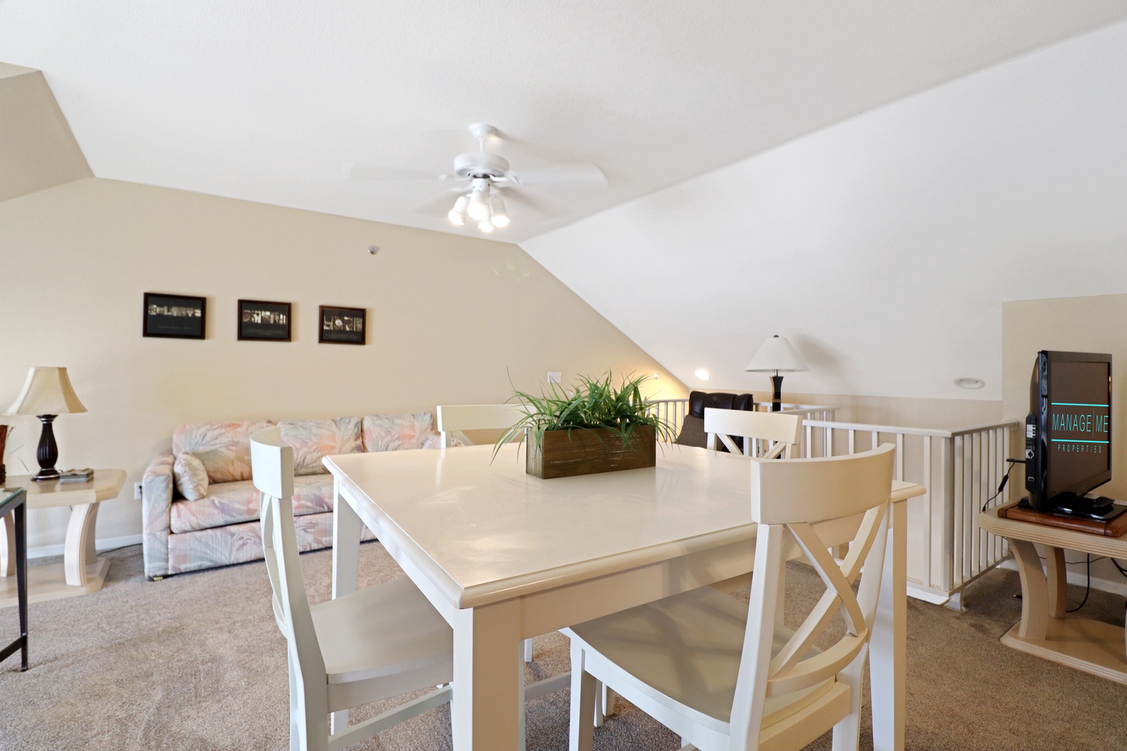 The master bedroom boasts a comfortable king-size bed and an en-suite bathroom with a walk-in shower. The second bedroom also has a queen-size bed and easy access to the second full bathroom. Upstairs, the loft area provides additional sleeping space with 2 queen-size bed and sitting area, making this condo perfect for larger groups.