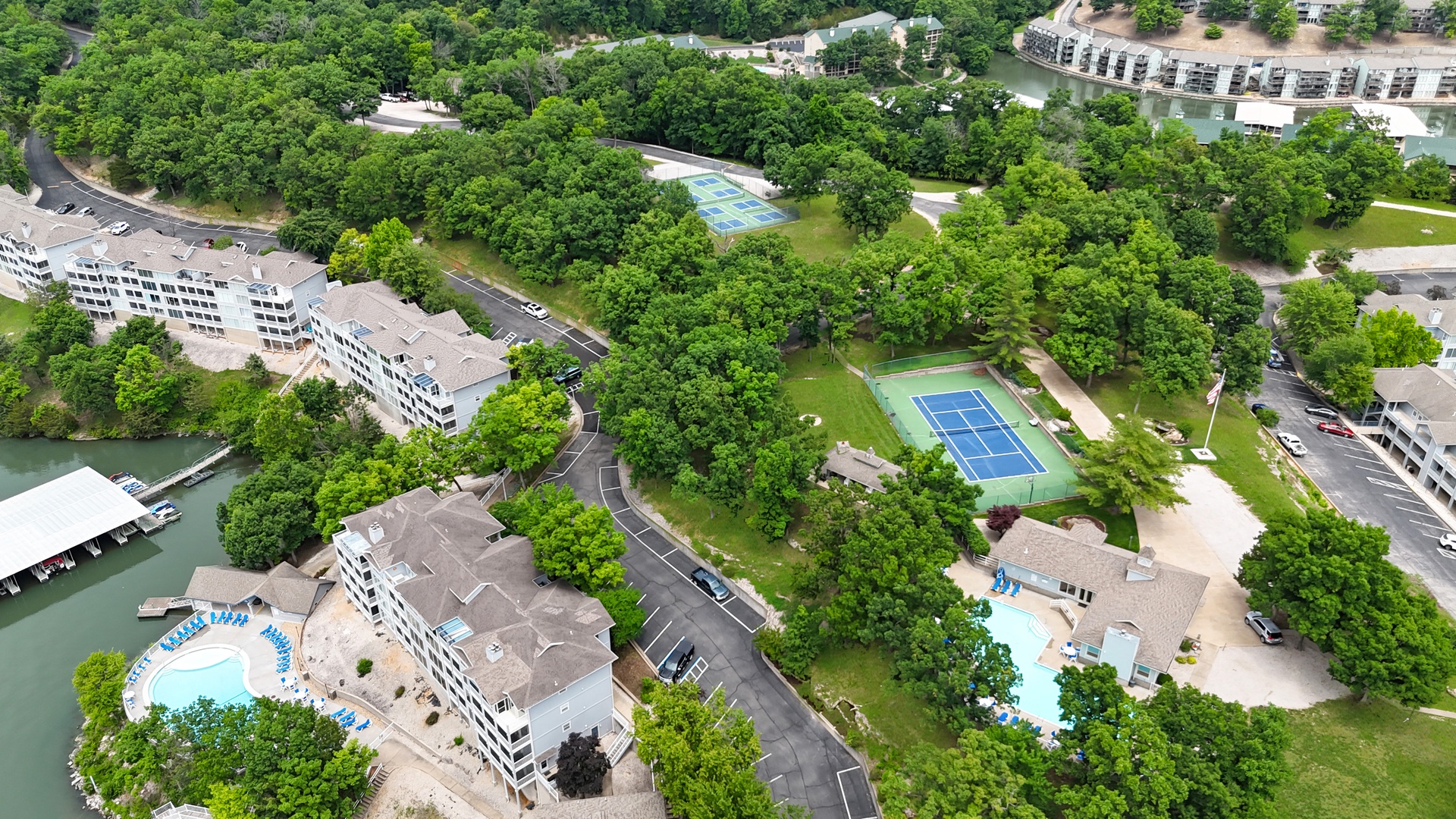 Enjoy access to two pools (one lakeside, one near the clubhouse), a swim platform in the lake, tennis courts, basketball hoop, and a children’s playground—there’s something for everyone!